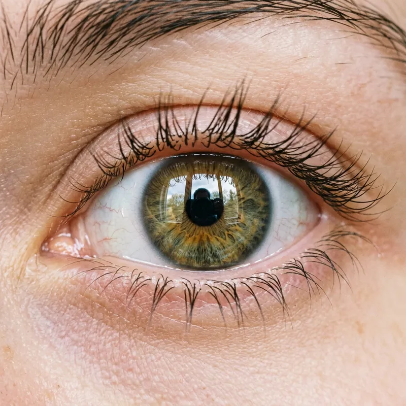 Detailed Close-Up of Eye with Individual Eyelashes and Reflections
