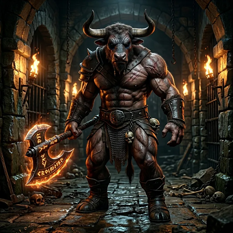 Detailed Minotaur with Glowing Axe Art