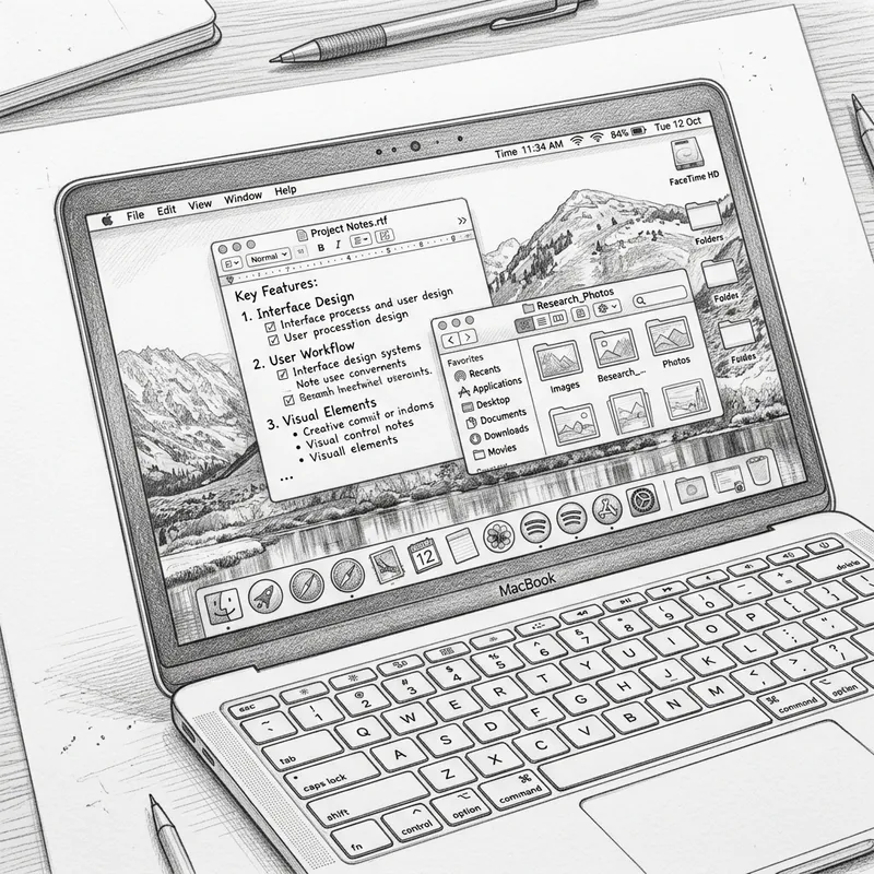 Detailed Sketch of Laptop Screen