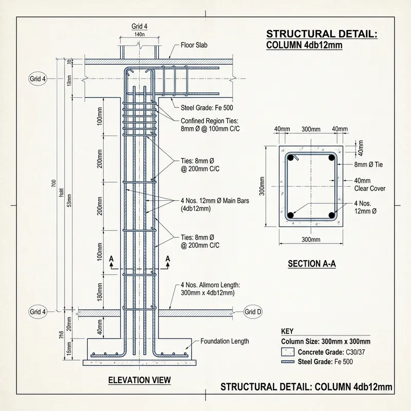 Detailed Structural Plan: Column 4db12mm Specifications