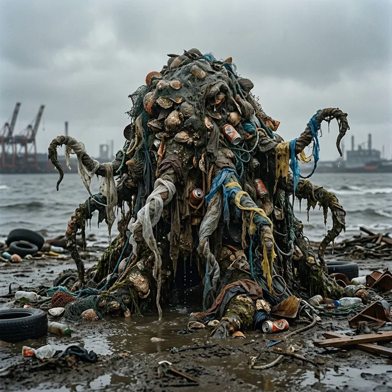 Devorak is a gigantic and amorphous mass of waste, with slimy tentacles made of rotting shells, plastic bags, and rusty cans.