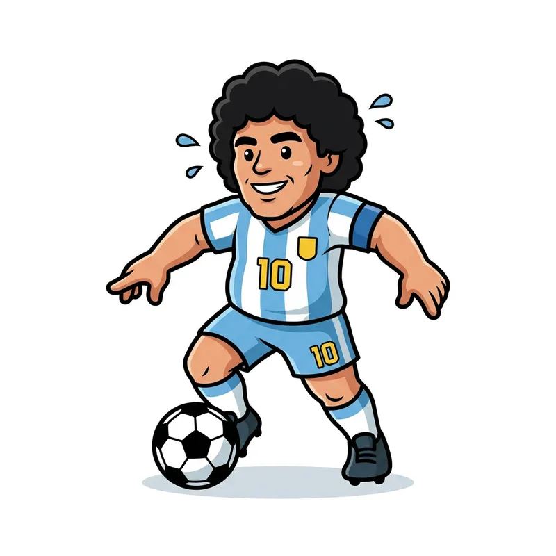 Vector mascot cartoon character of Diego Maradona playing football. White background