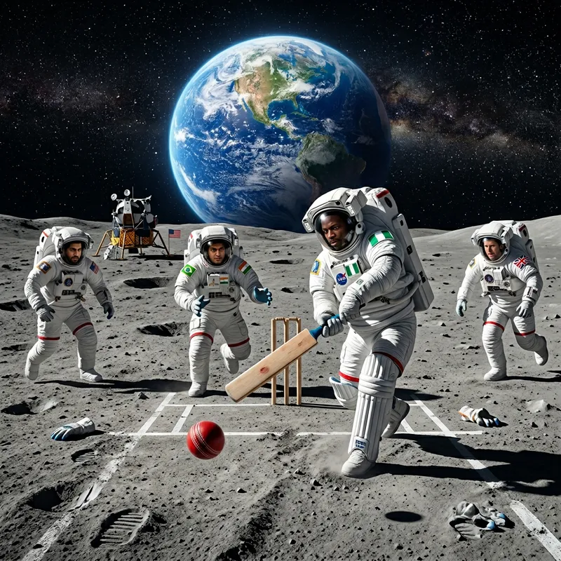 Diverse Astronauts Playing Cricket on the Moon