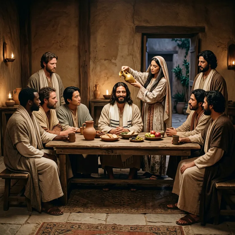 Diverse Scene of Historical Anointing with Jesus