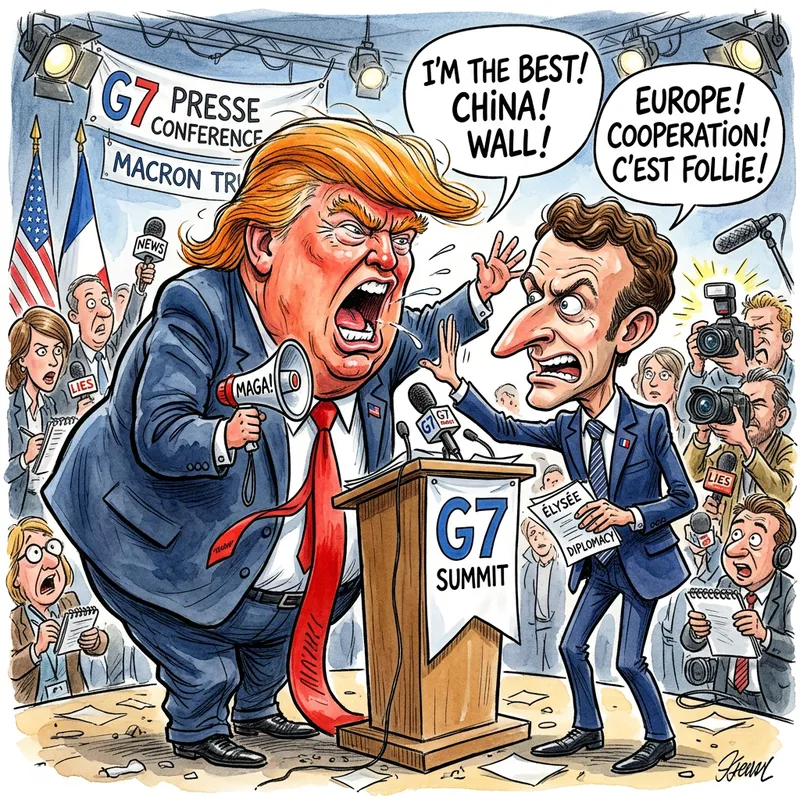 donald trump and emmanuel macron caricature.