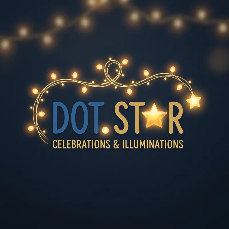 Design a logo. The name is 'Dot Star'. Incorporate into the design a warm string of lights.