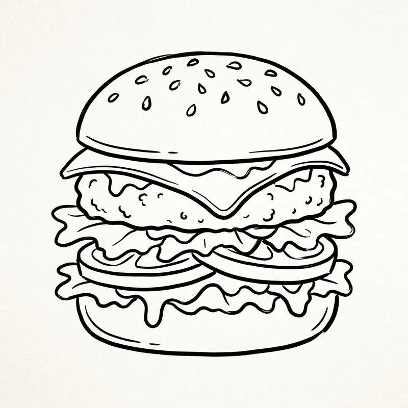 Simple Hand-Drawn Cheeseburger Coloring Page