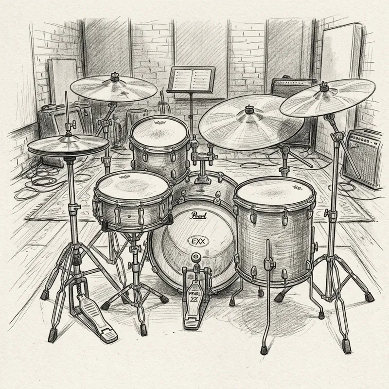 Original Prompt: drumset pencildraw