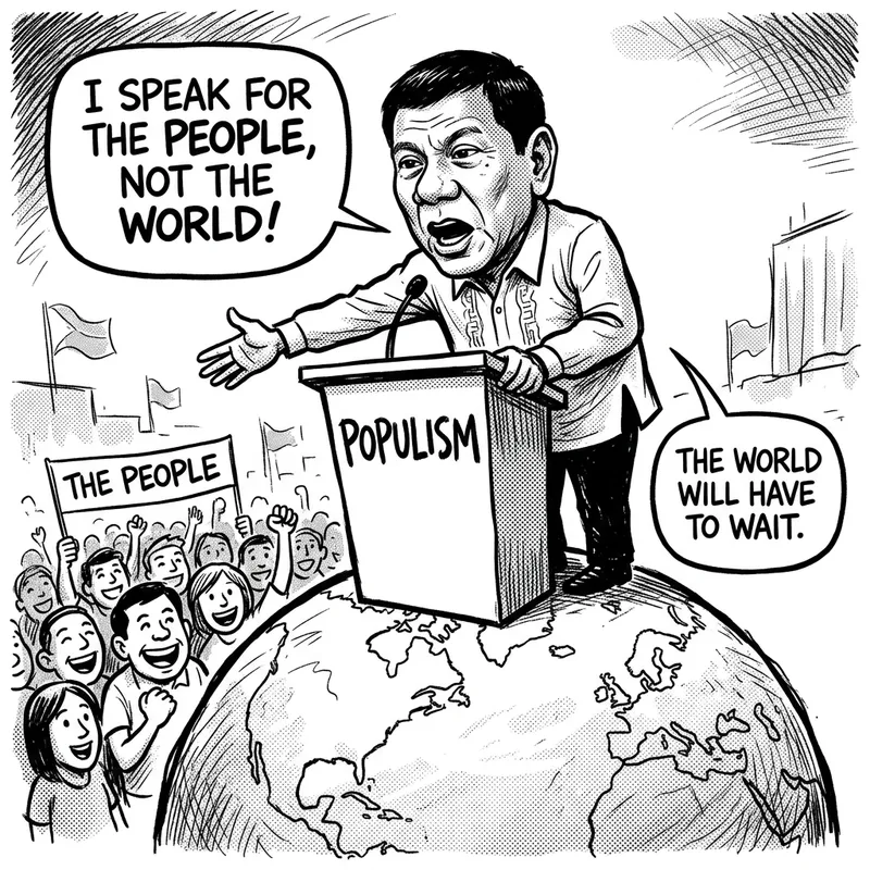 Duterte earth populism political cartoon drawing no color