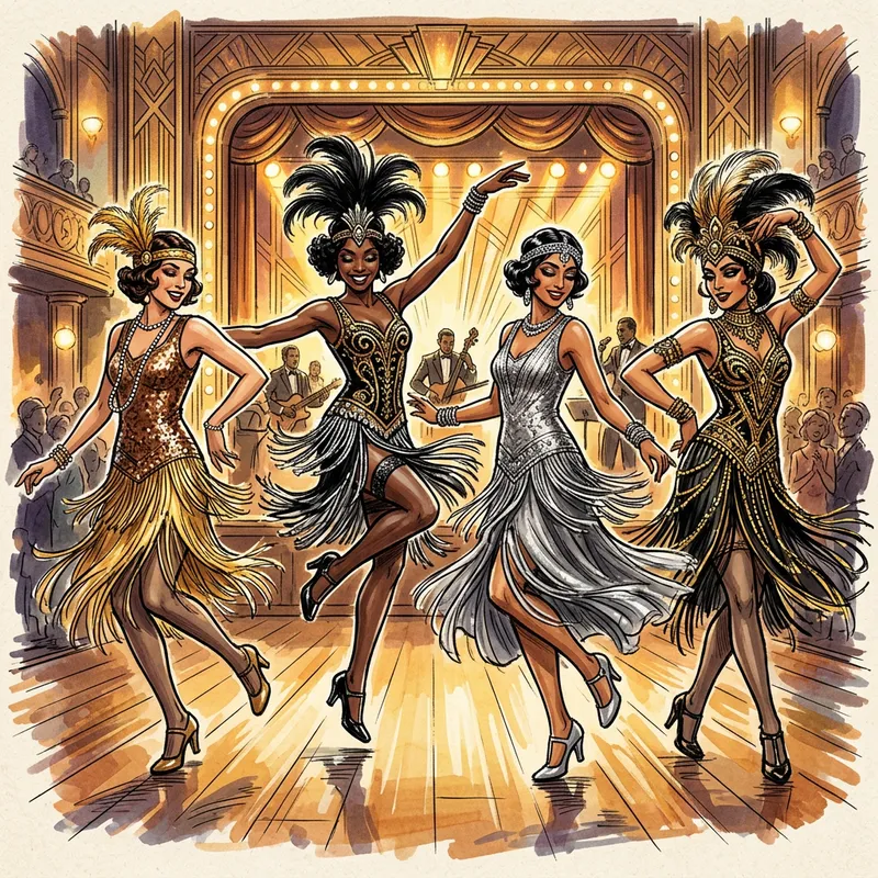 1920s Dance Ensemble Sketch with Four Female Dancers