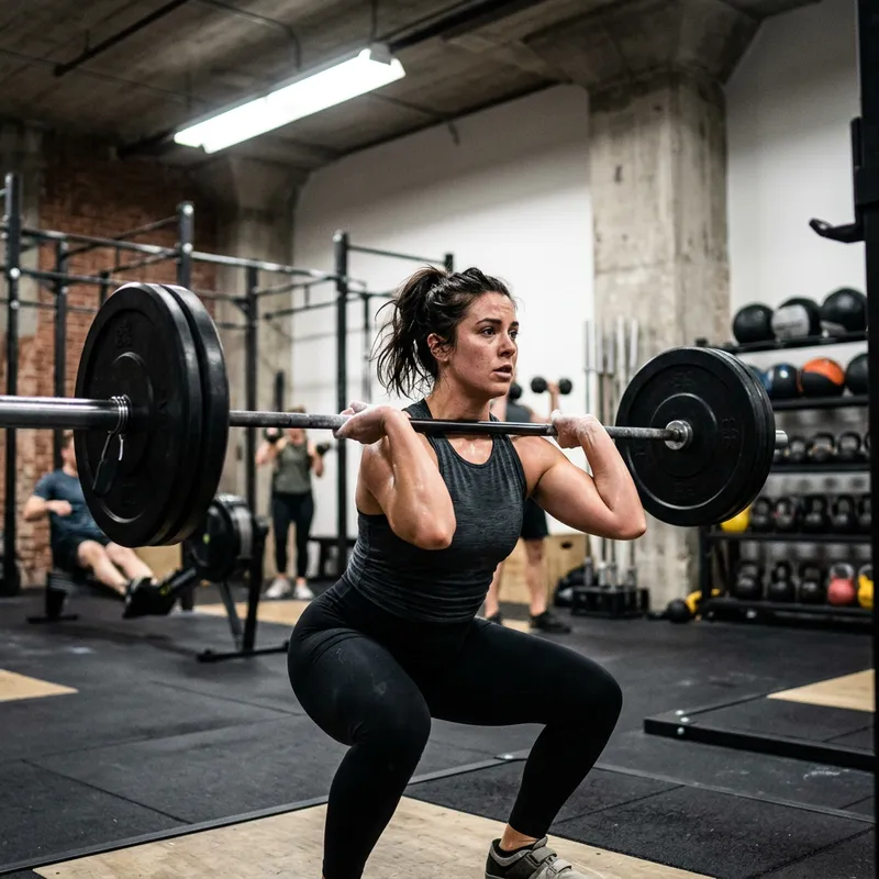 Dynamic fitness photo showing strength and dedication in professional gym setting.