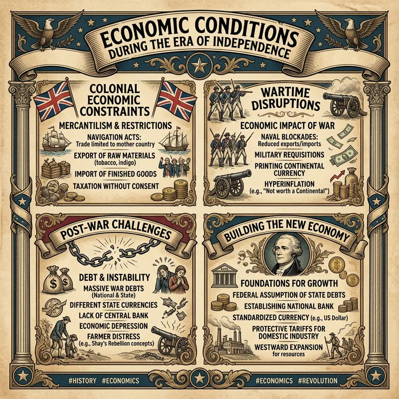 Please create an infographic depicting economic conditions during the era of independence