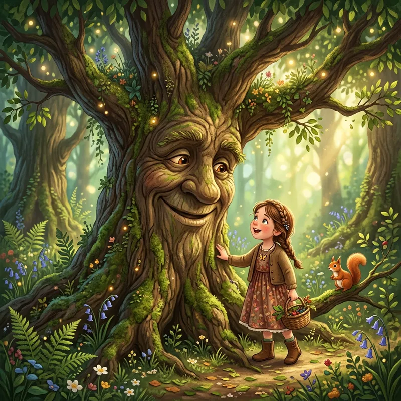 Friendly Tree Talking to a Little Girl
