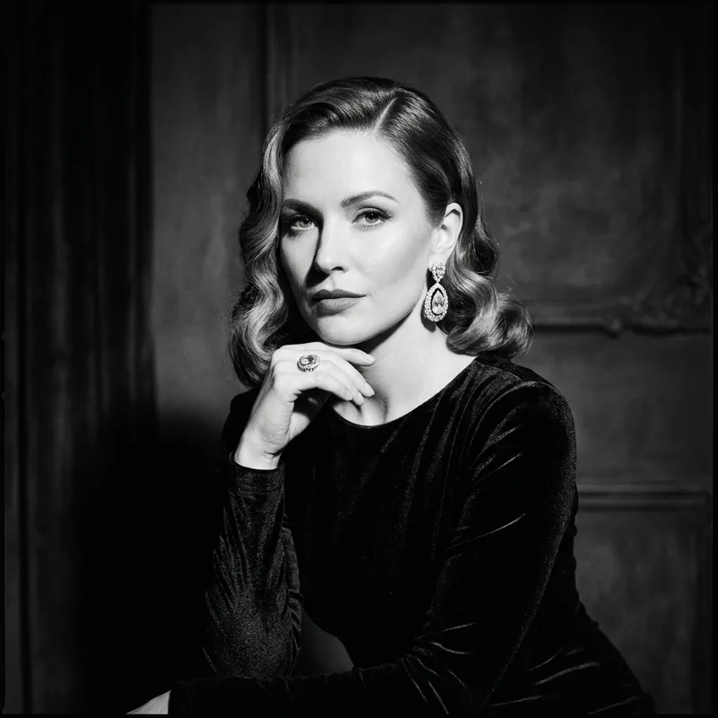 Elegant glamour portrait with dramatic lighting and sophisticated style.