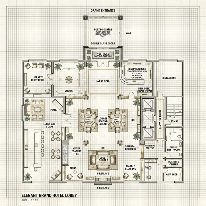 Elegant Hotel Lobby Floorplan Featuring Luxury and Comfort
