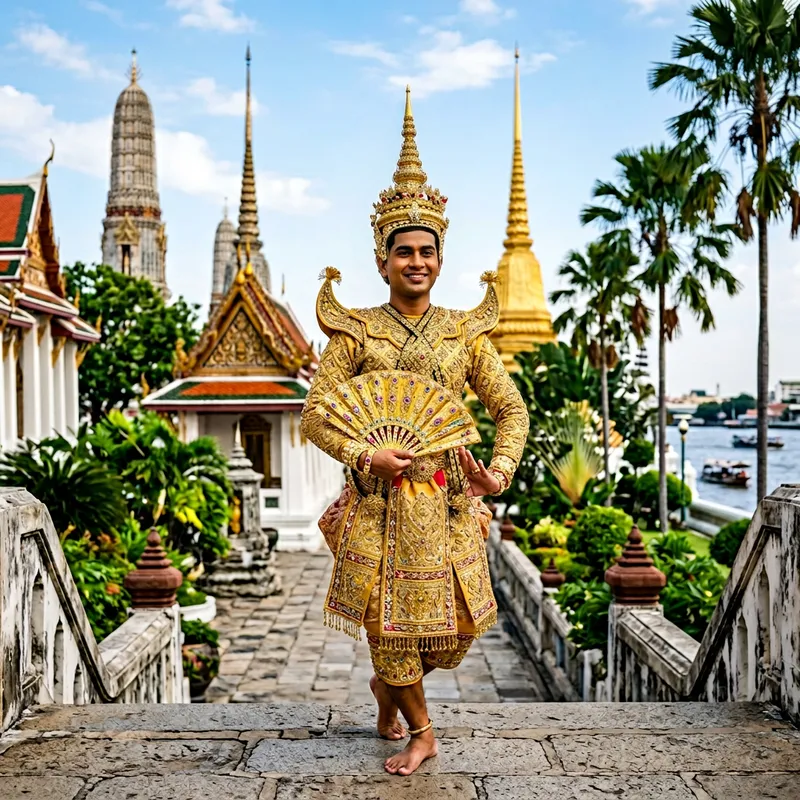 Elegant South Asian Man in Traditional Thai Costume