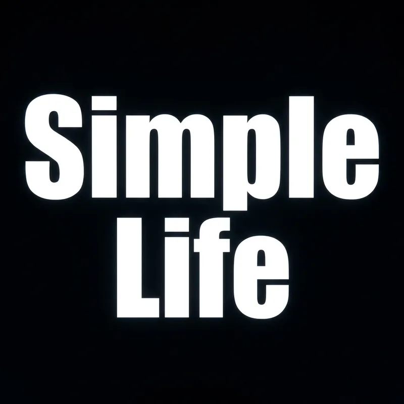 A high contrast image featuring the words 'Simple Life' written in large, bold letters. The background should be completely black, which starkly contrasts against the bright white text of the letters. The font of the letters should be strong and clear, signifying a typeface often used in headlines or important messages, emphasizing the importance of leading a simple life.