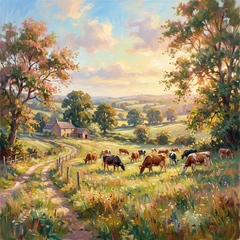 Enchanting Countryside Landscape with Grazing Cows