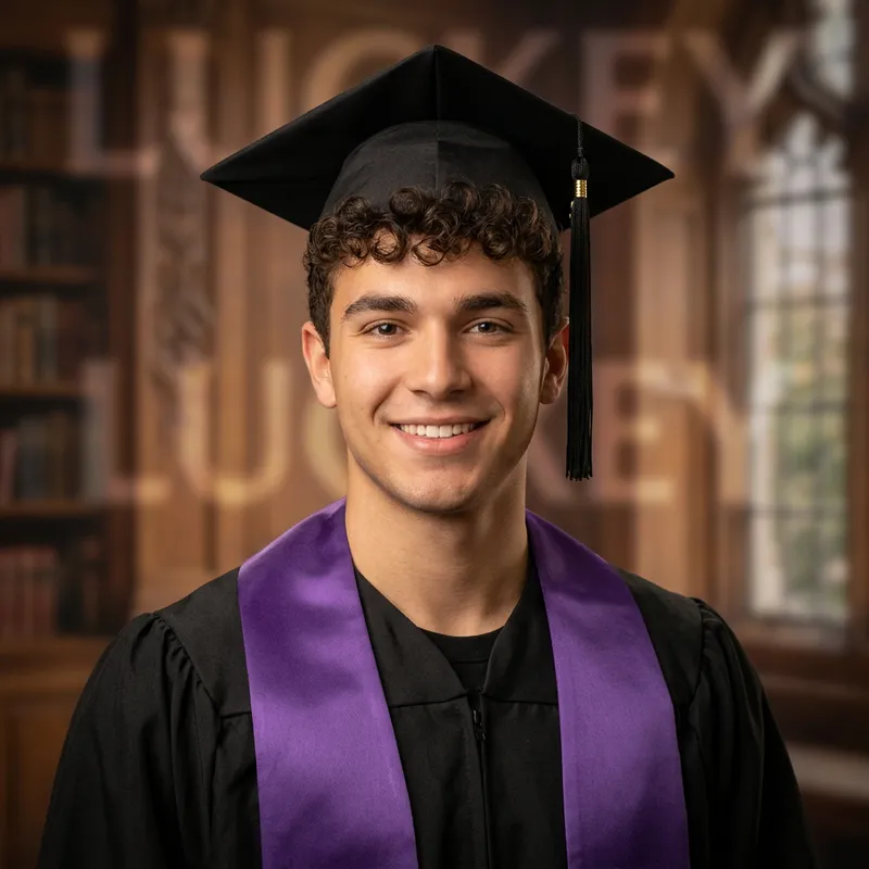 enhance the original photo—like improving lighting, smoothing background texture, or framing it like a formal graduation portrait—while keeping the same image and look.