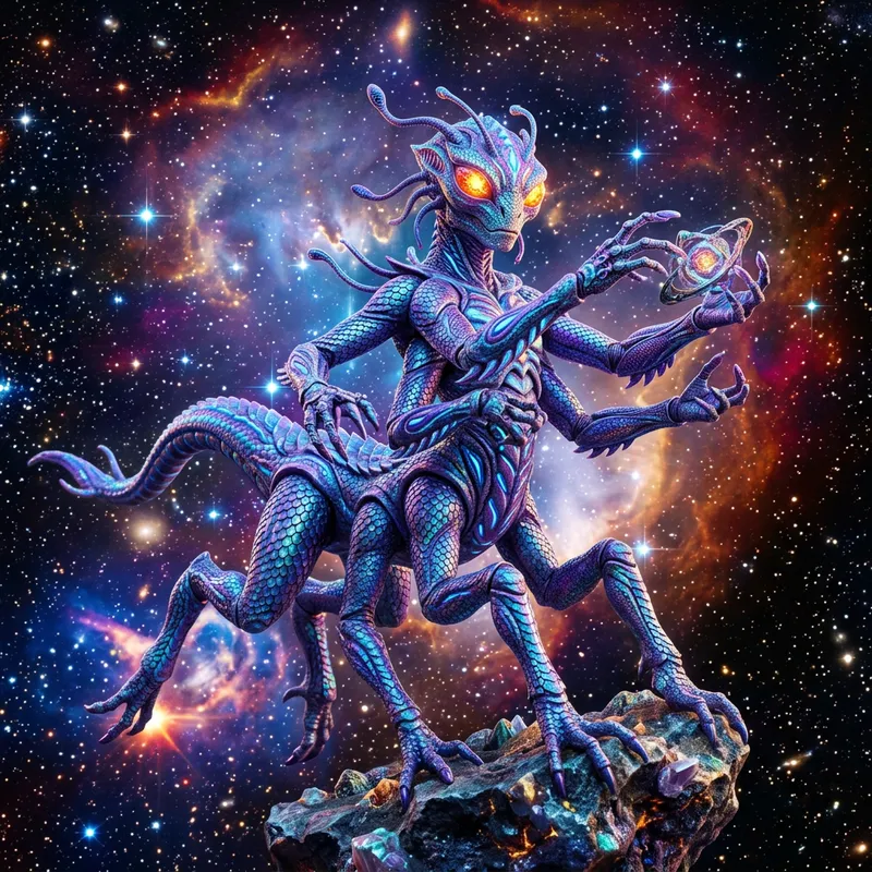 Enigmatic Alien in Starry Nebula