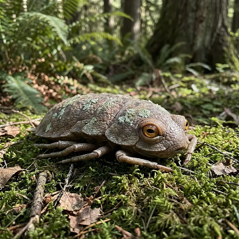 An unusual creature, this entity possesses a distinct combination of features typically associated with terrestrial lifeforms. Envision an entity equipped with both eyes and legs. It does not move, but lies stationary. Only its eyes, which are positioned relative to the rest of its form in a way that we might recognize, betray any sign of awareness or potential mobility. The rest of it is incredibly inactive, instilling a strange sense of tranquility.