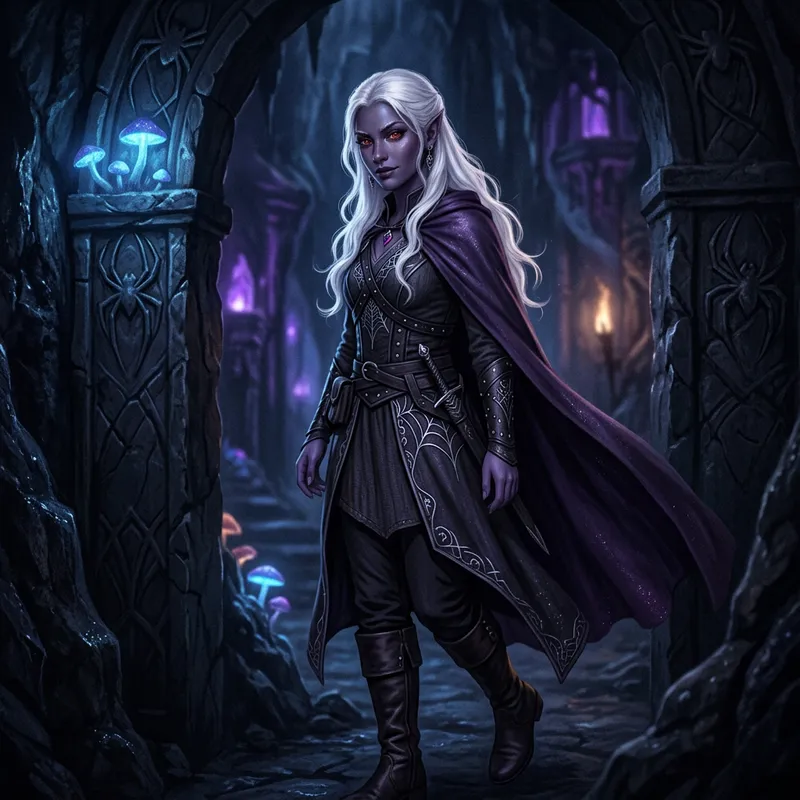 Enigmatic Drow Woman in Dungeons and Dragons Fantasy