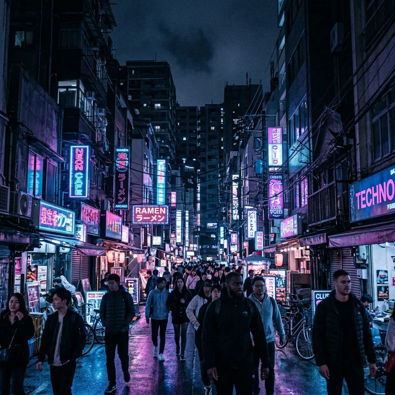 Discover the Neon Glow of the Labyrinthine City at Night