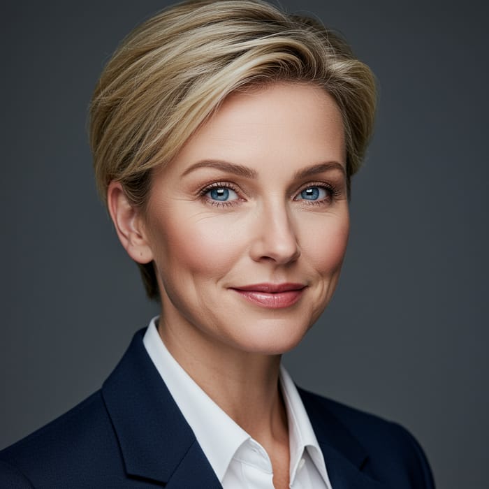 A Stunning Blue-Eyed Blonde Woman in Her 40s