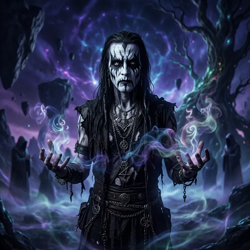 Ethereal Black Metal Face Paint Creature with Dream-like Powers