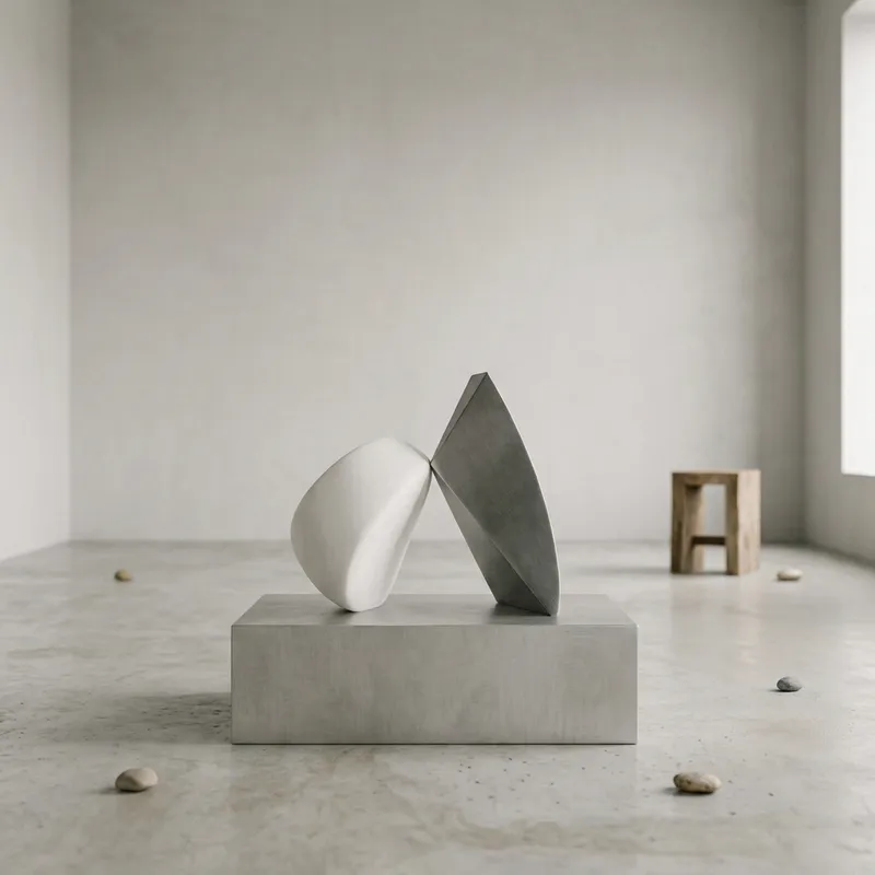 Create an image that exemplifies the concepts of ethics and minimalism. The scene should be simple and uncluttered, with very few elements. The elements present should somehow reflect moral values or ethical principles, though the interpretation of what that means is intentionally left vague to leave room for creativity. The color scheme should be understated and muted, supporting the overall minimalist aesthetic. This could be something abstract or a more literal representation, depending on your interpretation of the prompt.