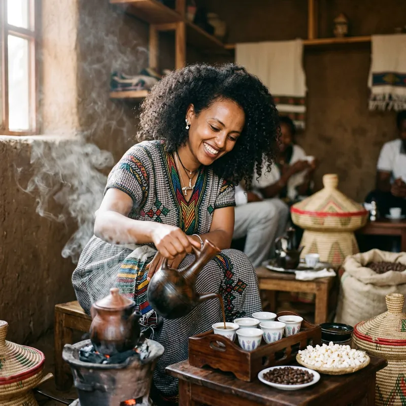 Ethiopian Woman Brewing Coffee