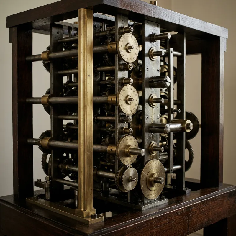 Create a chronological timeline showcasing the evolution of computers, divided into five significant periods. First, depict the invention of the mechanical computer during the 19th century with gears and dials. Next, signify the birth of the electronic computer in the 1940s showing tubes and panels. The third image should show the introduction of the personal computer in the late 1970s, a beige box with a monitor, keyboard, and mouse. Fourth image should indicate the rise of portable computing in the 2000s, highlighting a slim laptop. Lastly, illustrate the advent of quantum computing in the 2020s, demonstrate visually using qubits arrangement or symbolic representation.