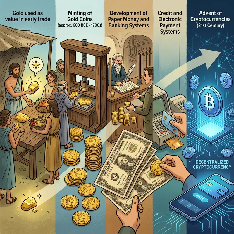 Evolution of Money in Human Society: From Gold to Cryptocurrency