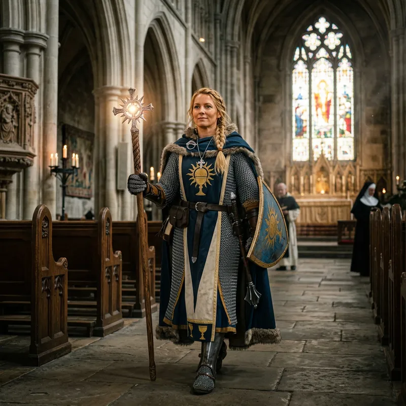 Fantasy Cleric with Blonde Hair in Chainmail Armor