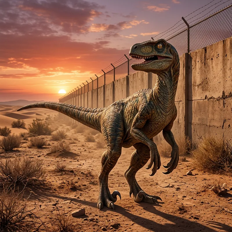 Fierce Velociraptor at the USA-Mexico Border