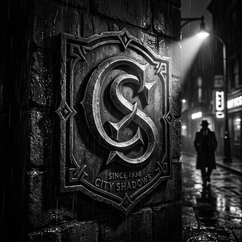 Create an image featuring a film noir-inspired interpretation of the letters 'C' and 'S', stylized according to the aesthetics of classic emblems. The design should evoke a dramatic ambiance through the use of high contrast and striking lighting.