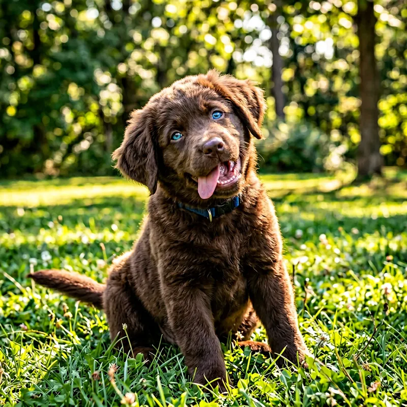 Fluffy Chocolate Labrador Retriever Laughing in Sunny Park