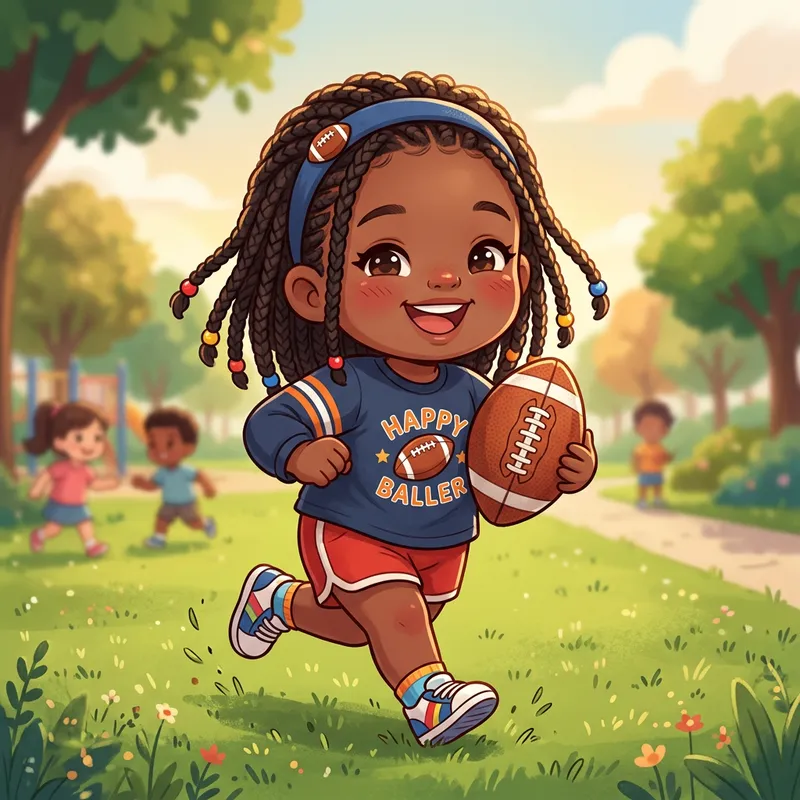 Cheerful Chibi African American Girl with Football