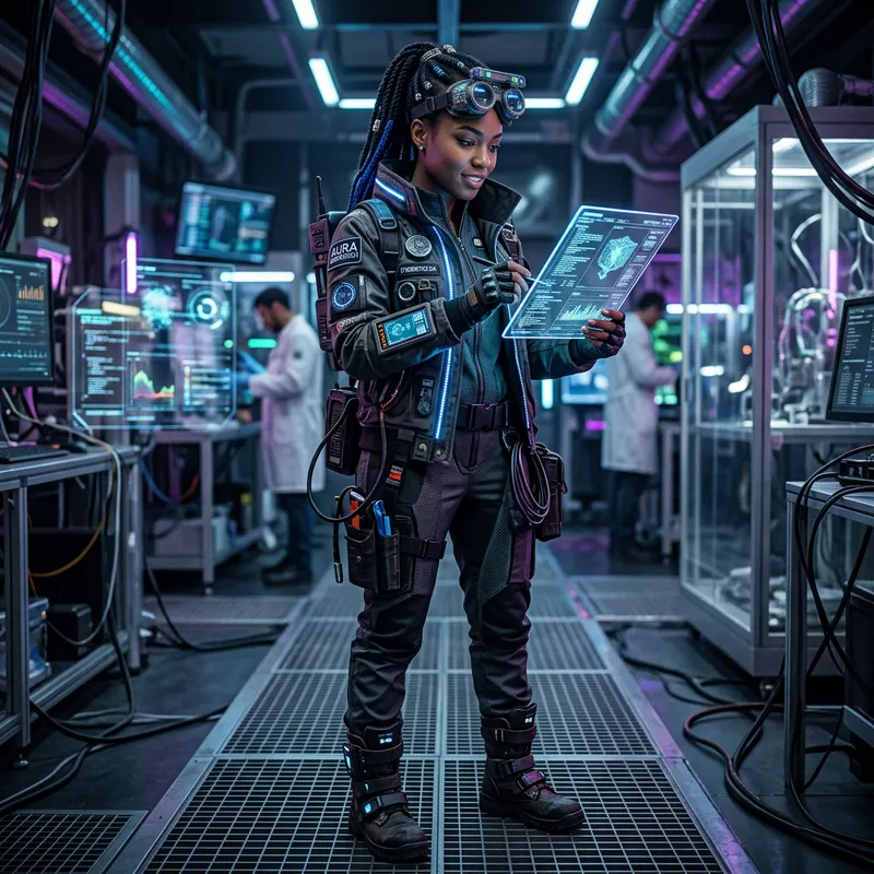 Futuristic African Descent Scientist in Cyberpunk Attire