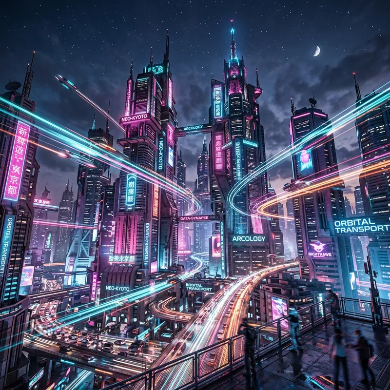 Futuristic Cityscape of Cyberpunk Metropolis at Night