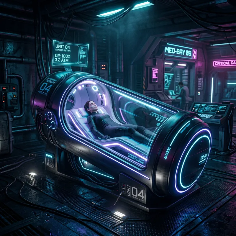 Futuristic Hyperbaric Chamber: Cyberpunk Style Concept Art