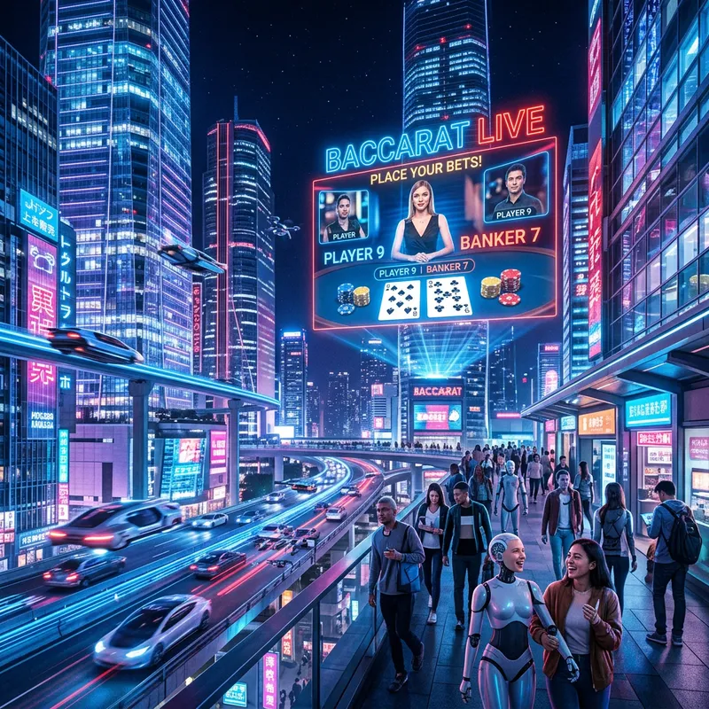 Explore the Baccarat 888th: Futuristic Neon Cityscape with AI Androids