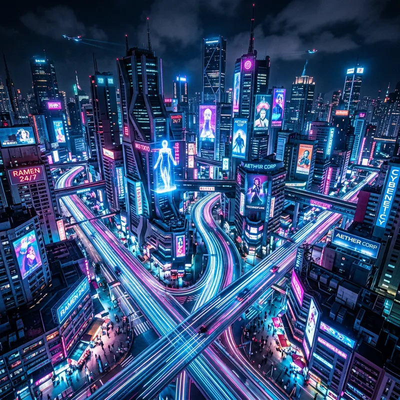 Futuristic Night Cityscape with Vibrant Neon Lights