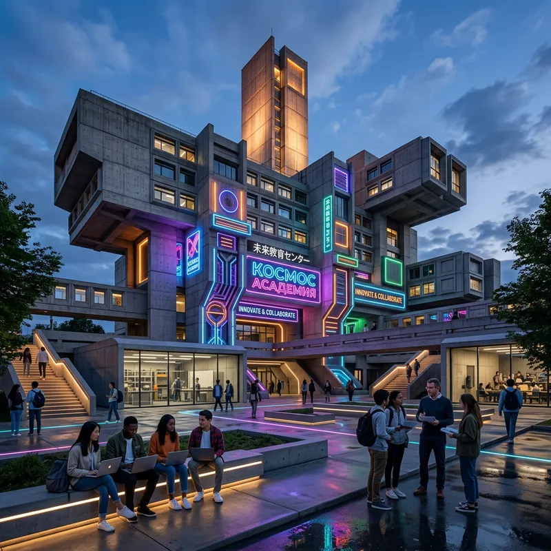 Futuristic Soviet Style School with Contemporary Neon Touch