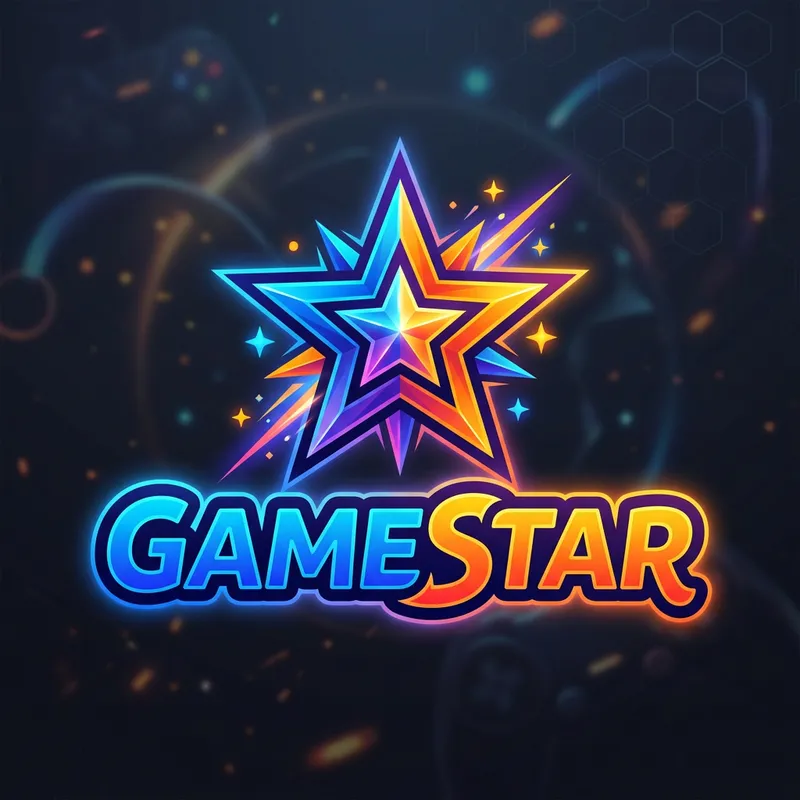 A logo for a fictional gaming company called 'GameStar'. The logo is vibrant and colorful, featuring a stylized star design. The word 'GameStar' should be incorporated into the logo design, with prominent, playful, and eye-catching lettering. The logo should also evoke a sense of excitement and adventure typically associated with engaging video games.
