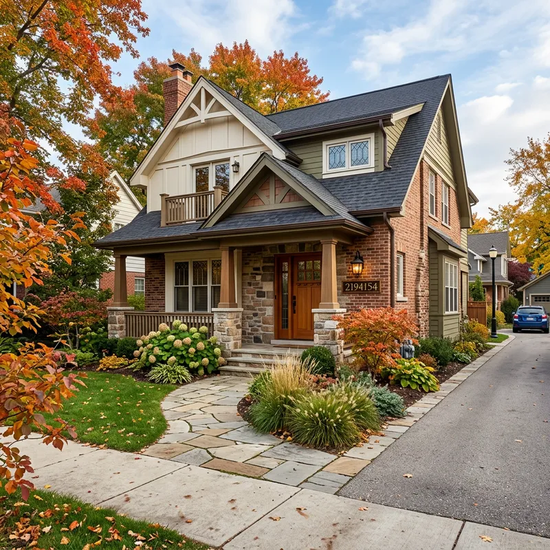 Generate an image of a house facade located at an angle.