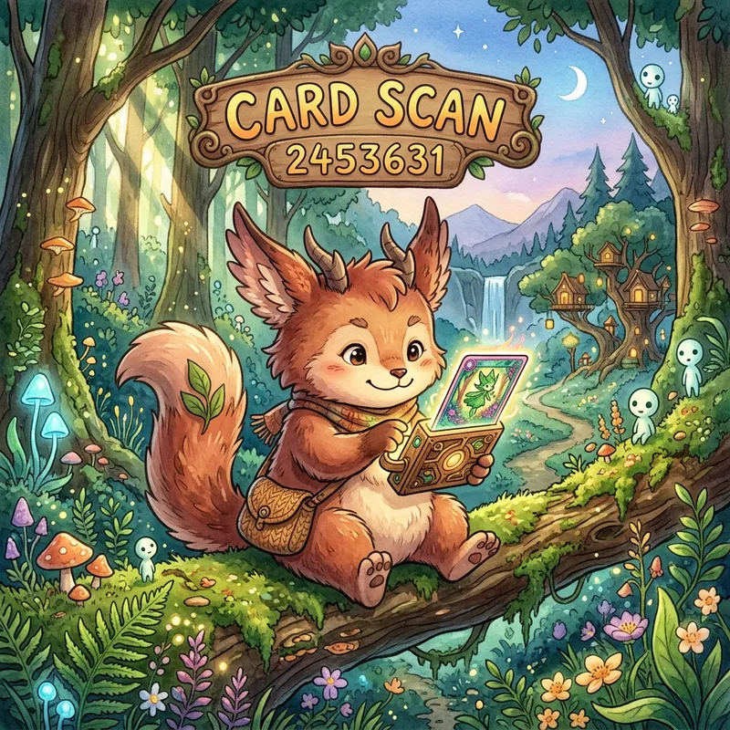 Original Prompt: ghibli style fantasy animal , the words "Card Scan"