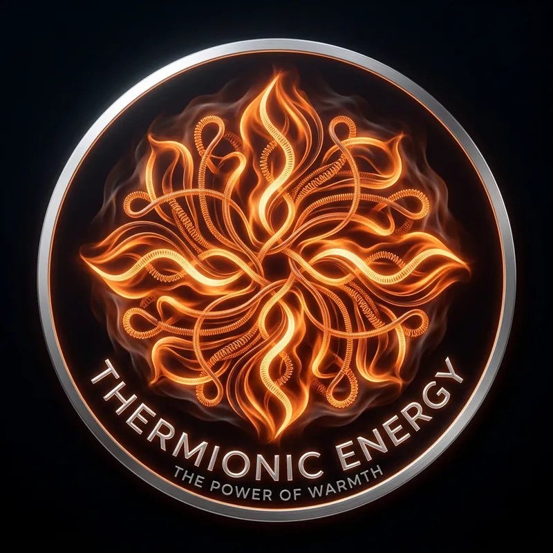 A complex and intricate logo design composed of glowing heater coils. The coils are shaped to resemble abstract patterns, twisting and turning in beautifully ornate ways. They emit a warm orange glow, conveying a sense of comfort and warmth. The background of the logo is dark black, allowing the vibrant coils to stand out prominently. Light ripples of heat are subtly visible in the air surrounding the coils. The logo is elegantly circular to encase the heater coil design, with its boundary having a sleek silver outline. It is symbolizing the power of heat energy that the company provides.
