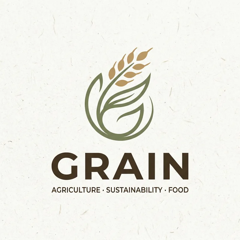 Design a logo for a company named 'Grain'. The logo should incorporate elements related to agriculture, sustainability and food. It should have a minimalist and modern design, with a palette of natural earth tones. Preferably, use symbols like wheat stalks or grain silhouettes incorporated subtly into the logo.