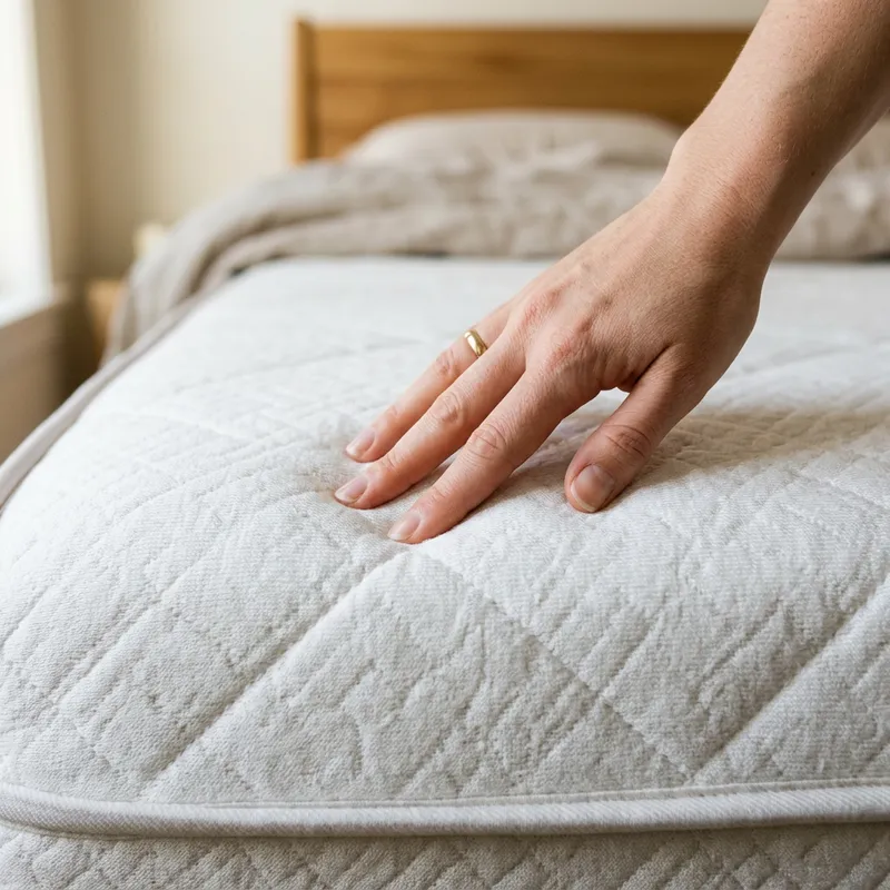 Original Prompt: Una mano tocoando el tejido de un colchon